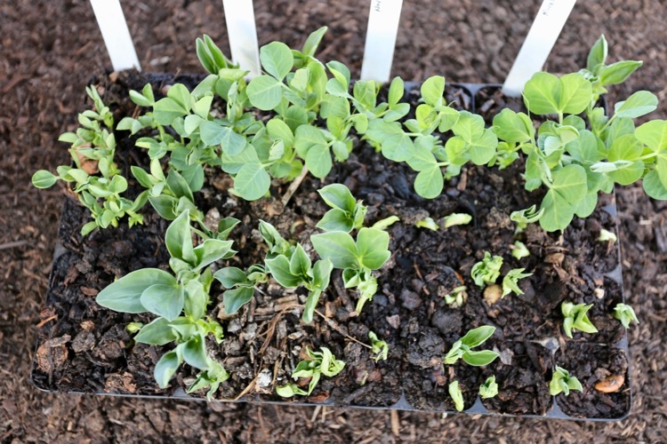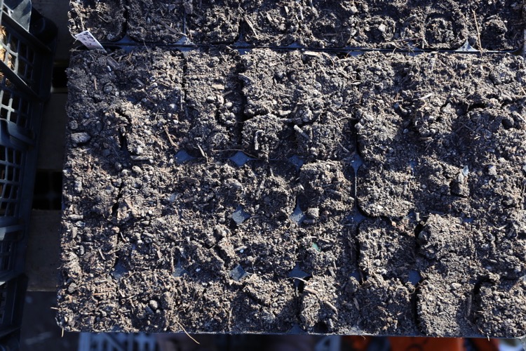 Legume trial 8 rows sown in modules, 2 each of compost from September, October, November, and mushroom