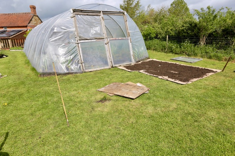 Steph mentioned to First Tunnels that I was tempted to change models, in order to have straight sides. They offered to provide and erect a new one, next week. We have a day on Weds 22nd to take down the current tunnel, with help from the community project who are receiving it, Then I shall fleece new plantings until the new tunnel is erected.