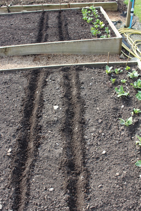 Drills drawn in the moist, surface compost – for sowing carrot and parsnip