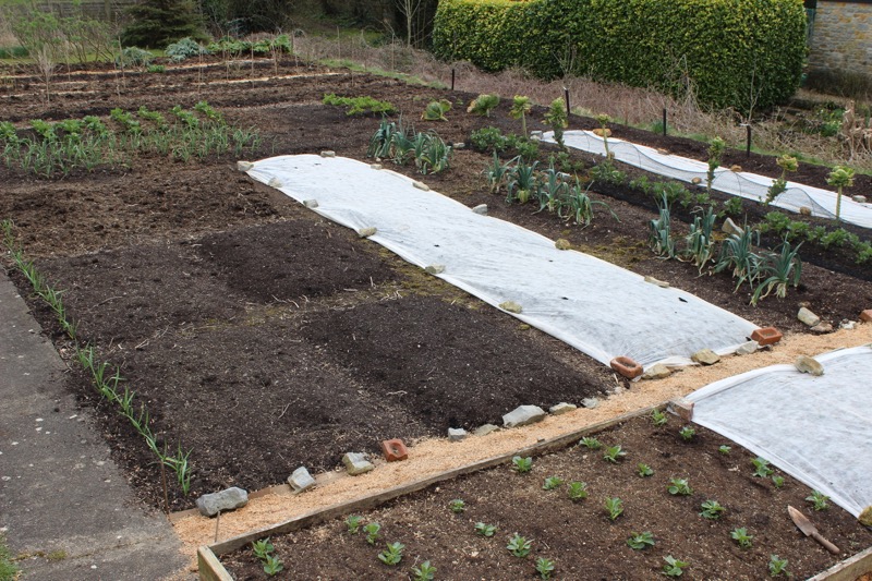 By late April I expect to be picking the first outer leaves of lettuce sown February and planted in March, covered by fleece until first pick.