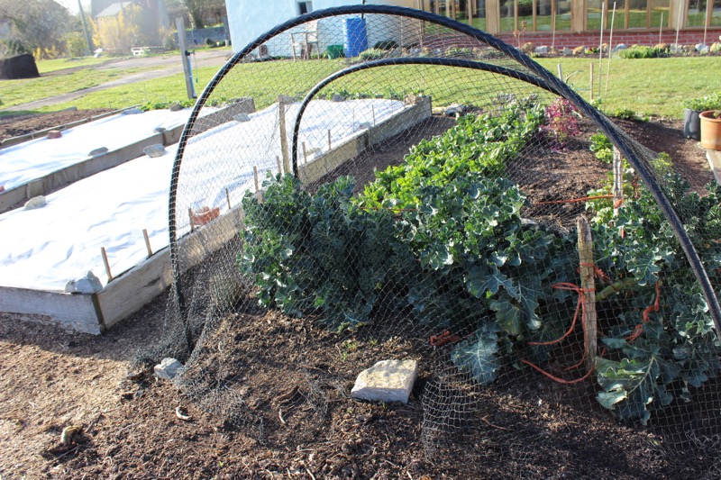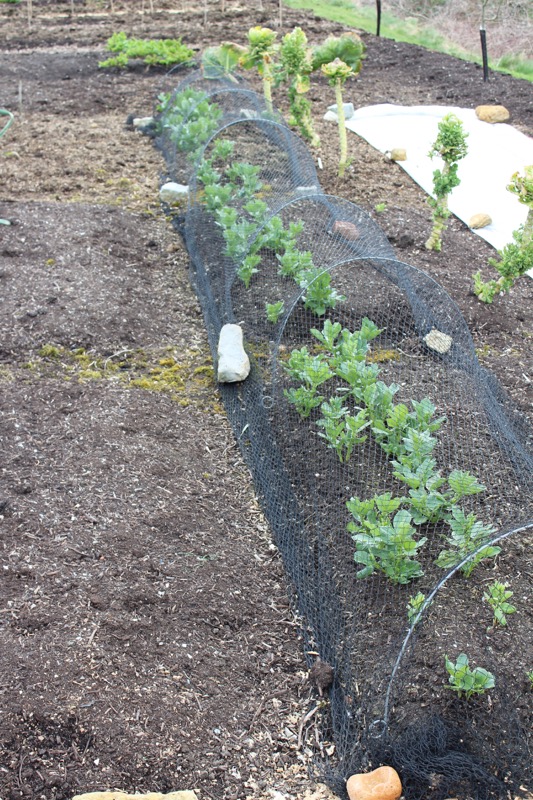 Netting against pigeons over purple sprouting which was sown in August