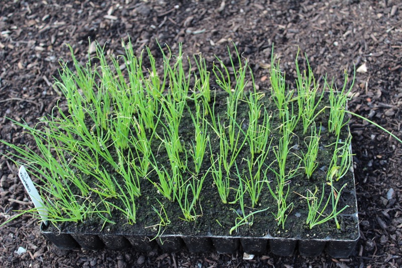 Stuttgarter onions, bigger half on left were sown in pencil-holes, on right in finger-indents