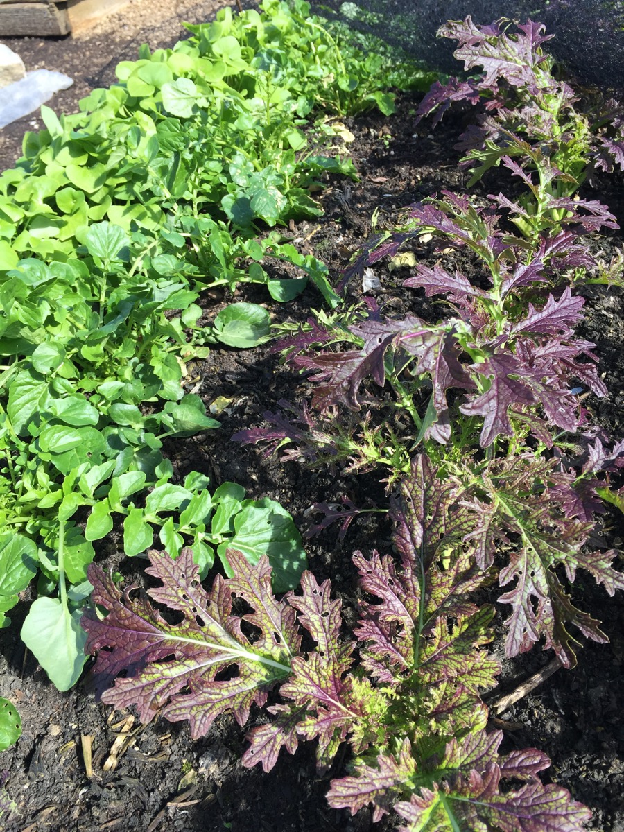 These salads have been unprotected outside (net only) – Claytonia, land cress, Red Dragon