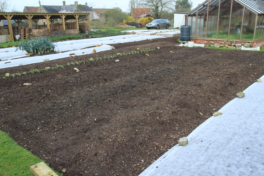 We pulled back the fleece 30th March to check progress and to hoe the dug bed
