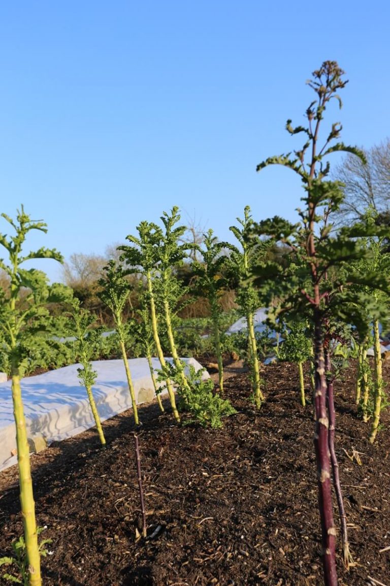 Kale rising to flower, 14th April: we shall clear it in two or three weeks after picking more shoots, then plant celery and celeriac in late May