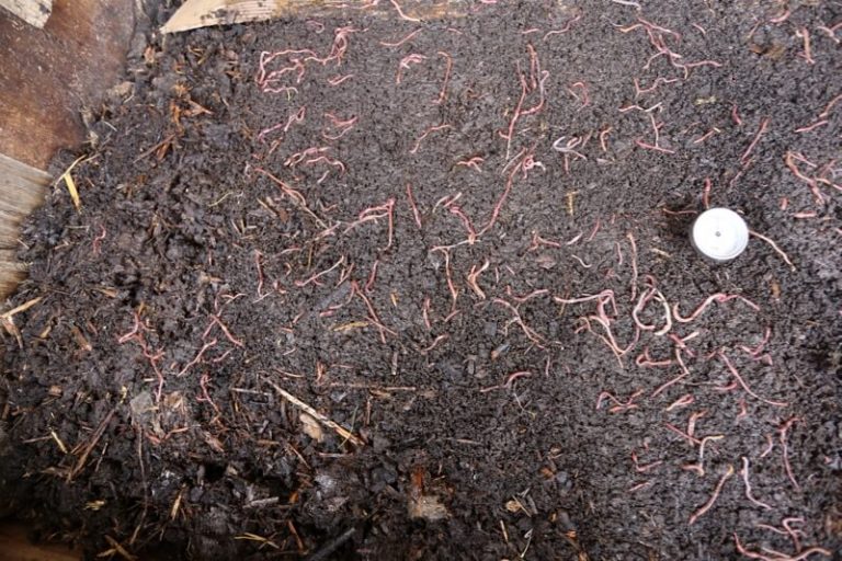 Compost from November until Christmas, which was turned in March. It’s still 35-40C so the worms are near the top!