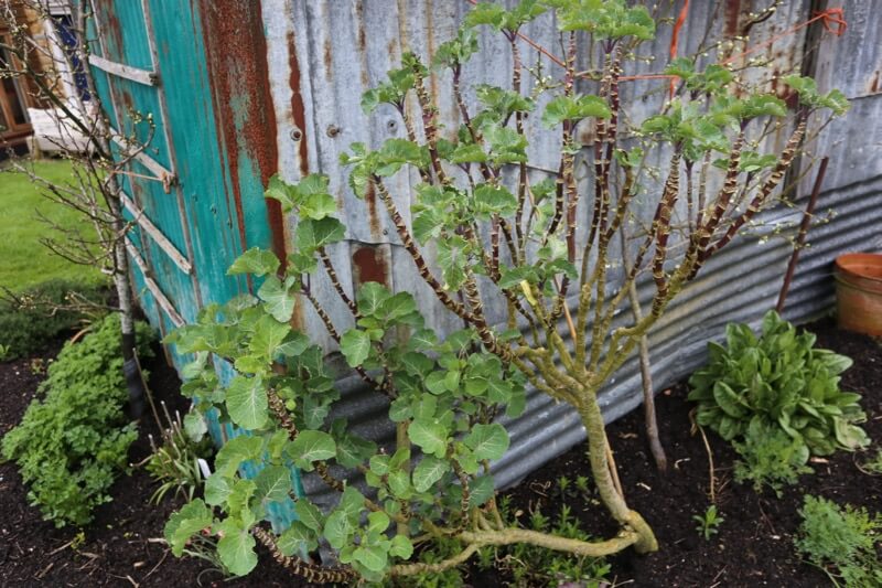 6 year old Taunton Deane kale survived the wind-freeze, but is slow to regrow where it had less shelter