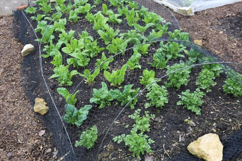 In contrast, spinach survived fine without any protection, except a bird net against eating by rabbits. Coriander also is fine, chervil is rampant now, as are many salad plants.