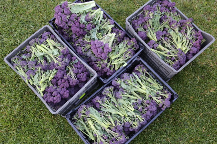 Main harvest of Claret F1 purple sprouting broccoli, 10 months after sowing and worth the wait
