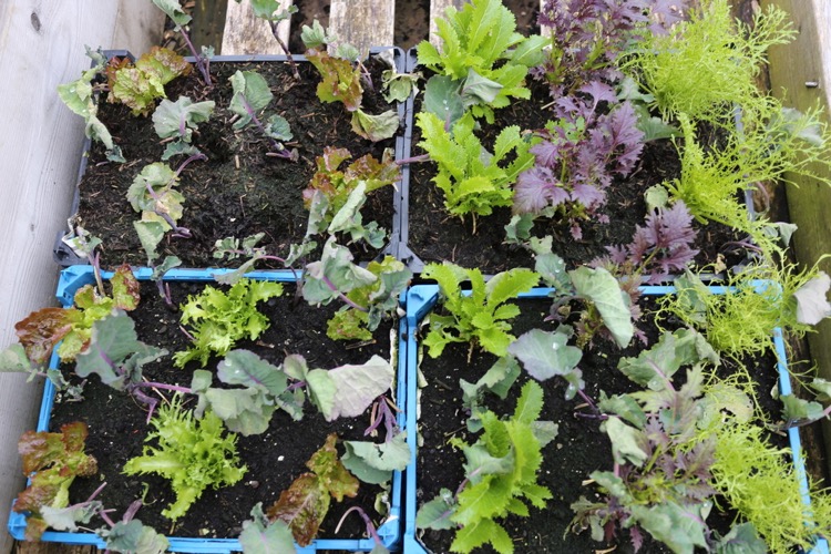 Boxes of salad plants have given 1kg each this winter, interplanted stems of perennial kele