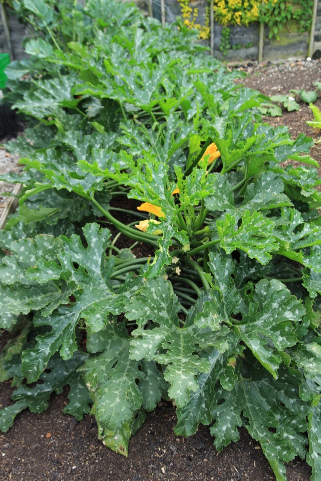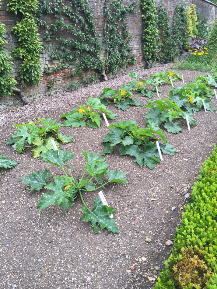 A trial of courgette varieties, they all had many fruits, planted after early peas