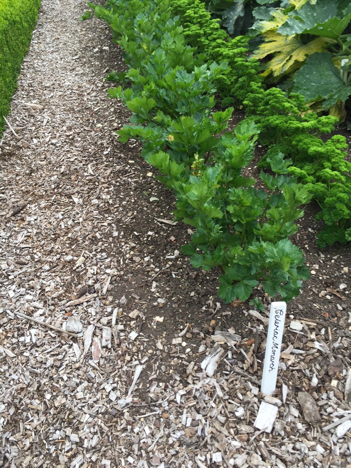 Celeriac plants are a little small, perhaps too close to the wood chip edging