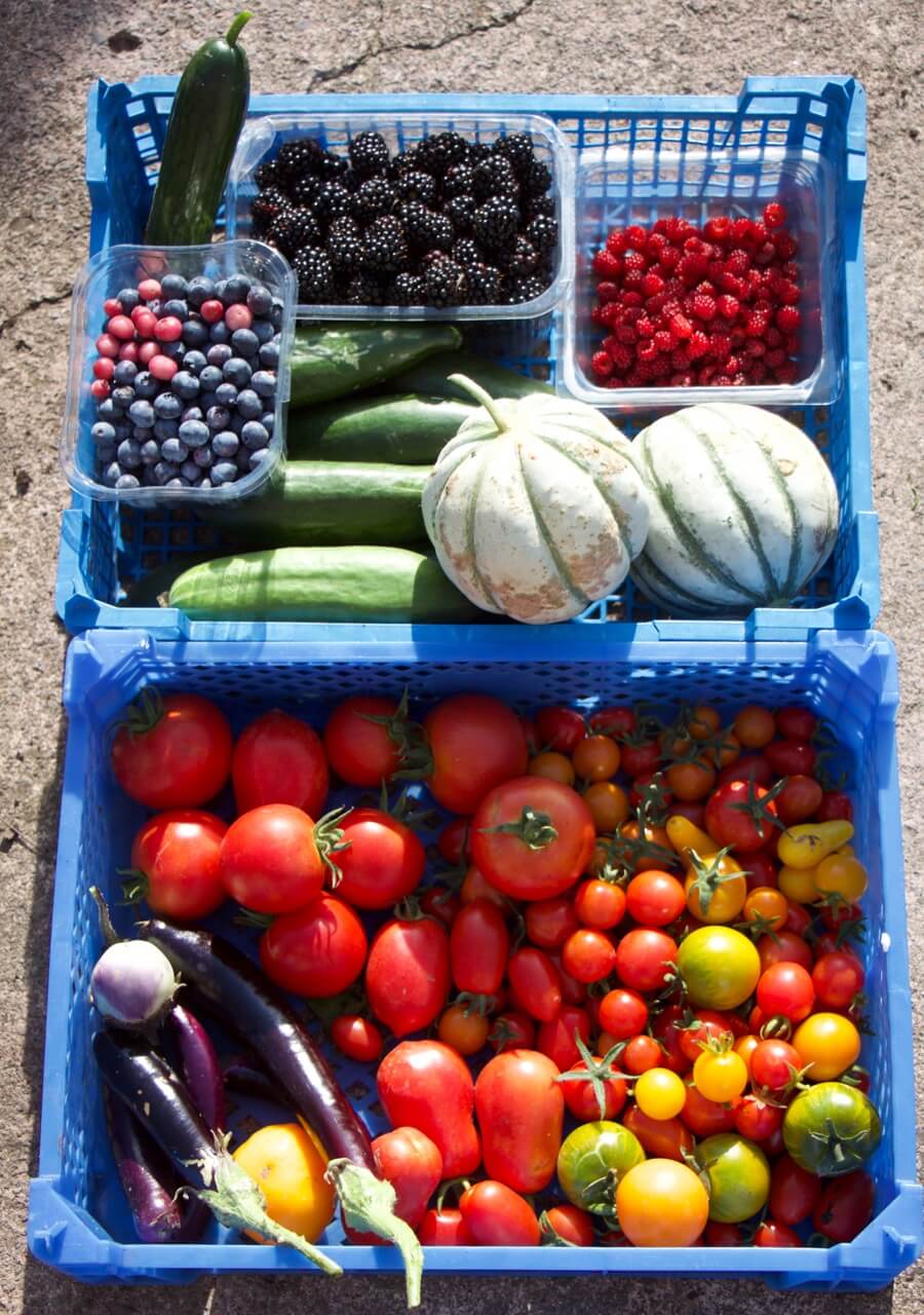 Steph enjoyed an early morning pick of fruit and veg. She lives in an ex-council house with its long back garden, which is now a quarter full of polytunnel!