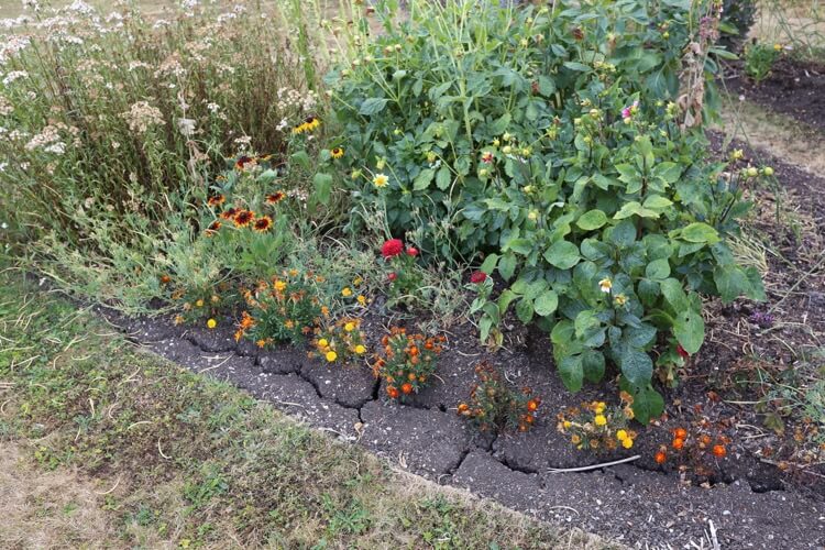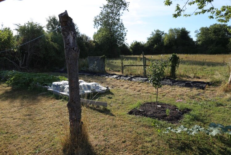 Because of the unusual dryness, I have relaxed my mulch method and am trialling some less decomposed materials, which in a normal summer here would harbour slugs. In 2018, the digestate I was given (by product of methane production) is helping to conserve moisture. It is grass and maize.