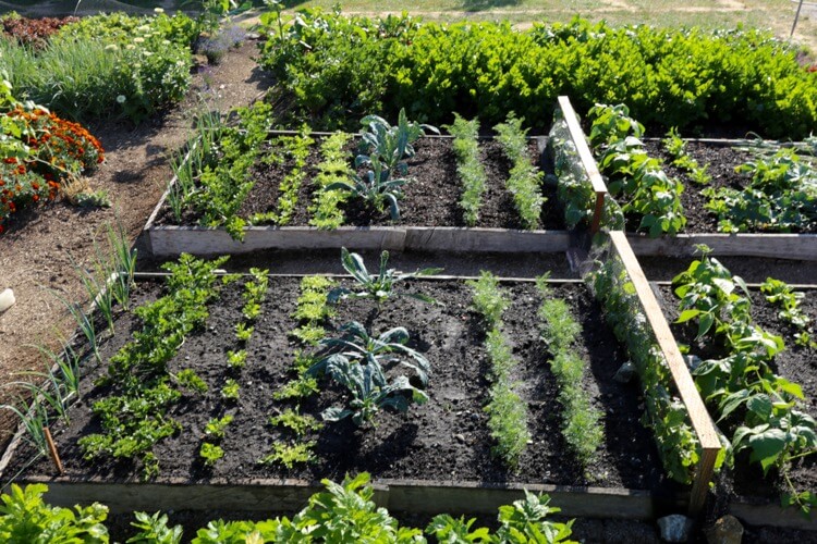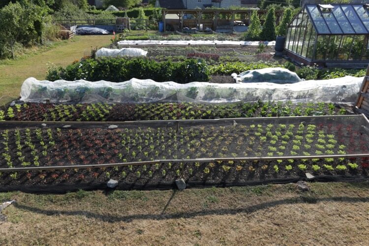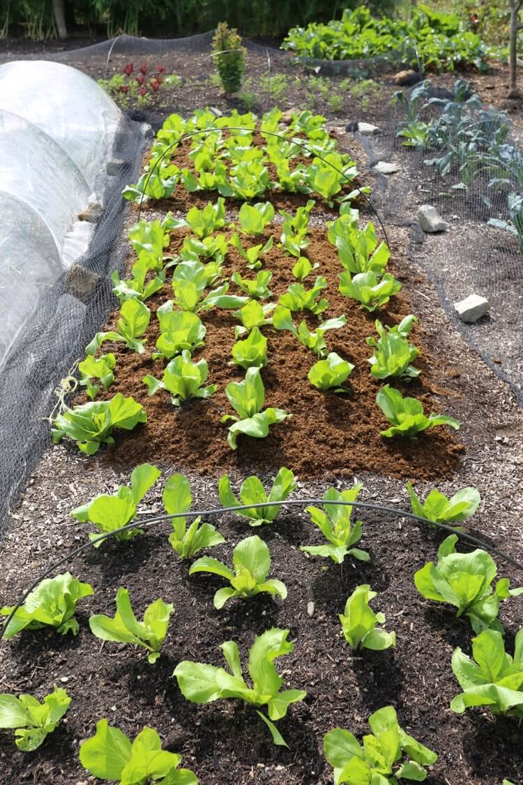 This lettuce bed has been picked twice so far. was broccoli in April-May, net is against rabbits and birds