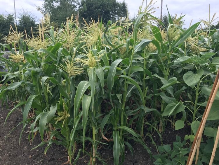 Sweetcorn on Steph’s allotment, watered at planting and twice since