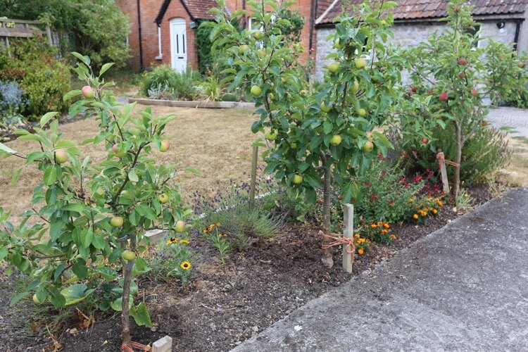 Apples on M9 rootstock will soon be cropping so I watered them recently