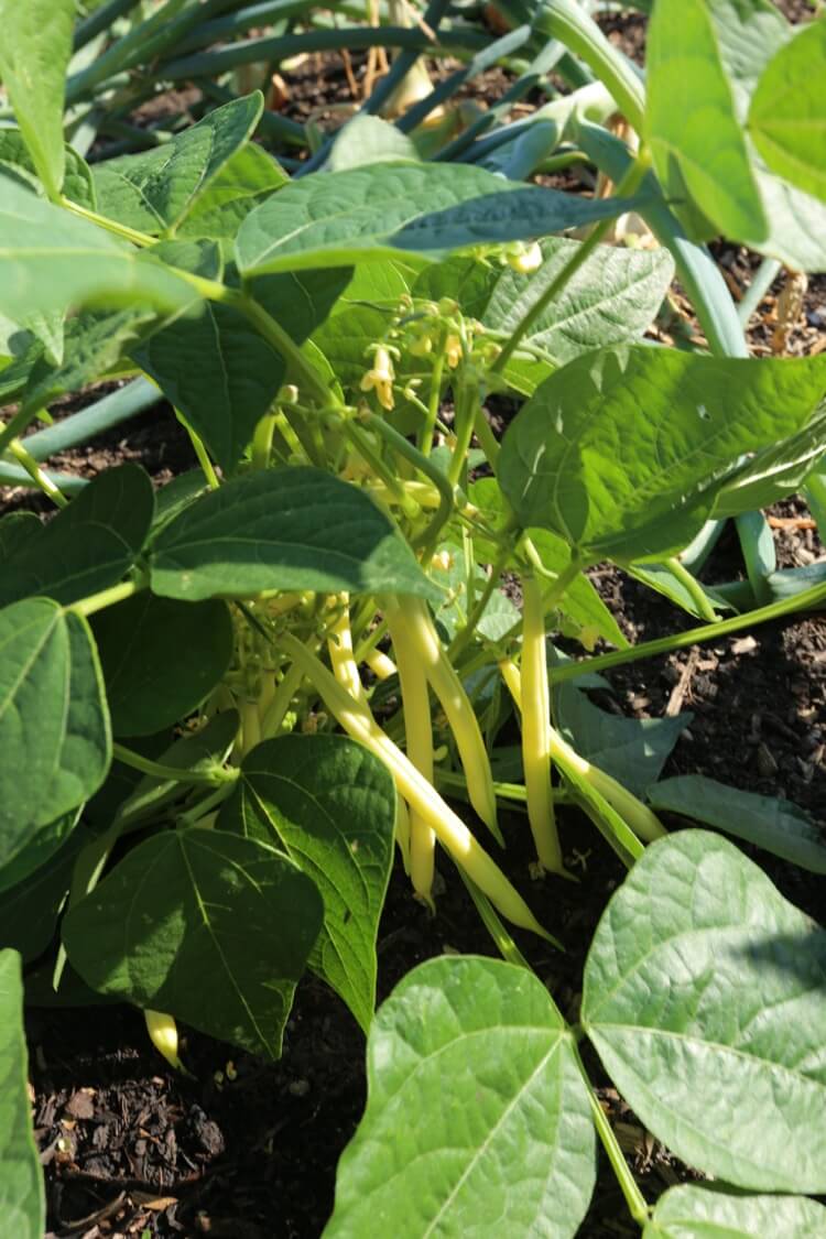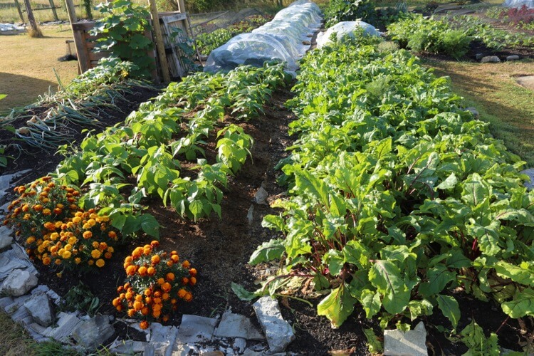 Same view two months later in late July, dwarf beans left & multisown beetroot right