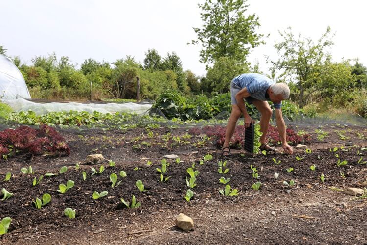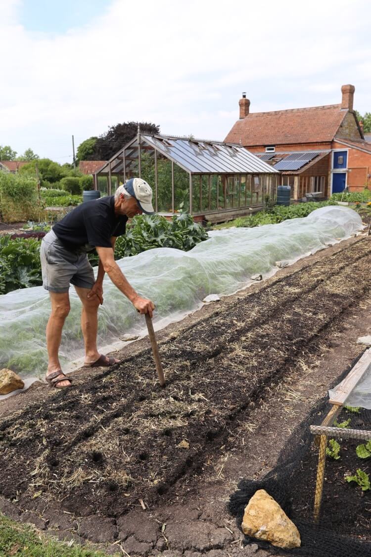 Dibbing for chicory plants, after clearing summer calabrese and watering