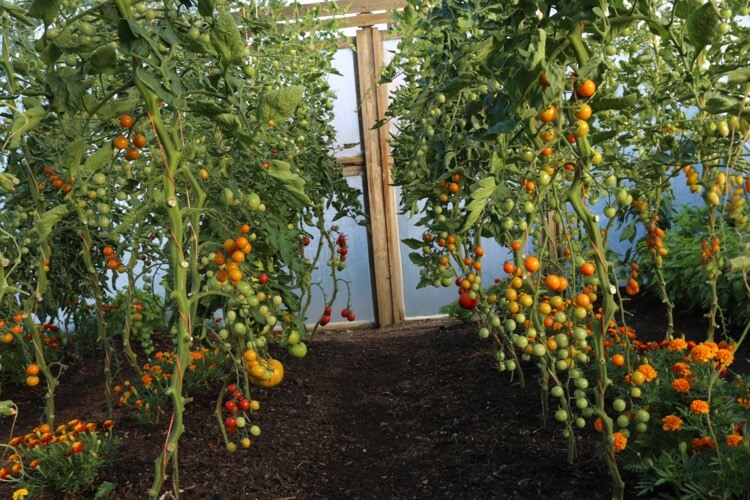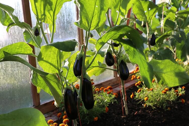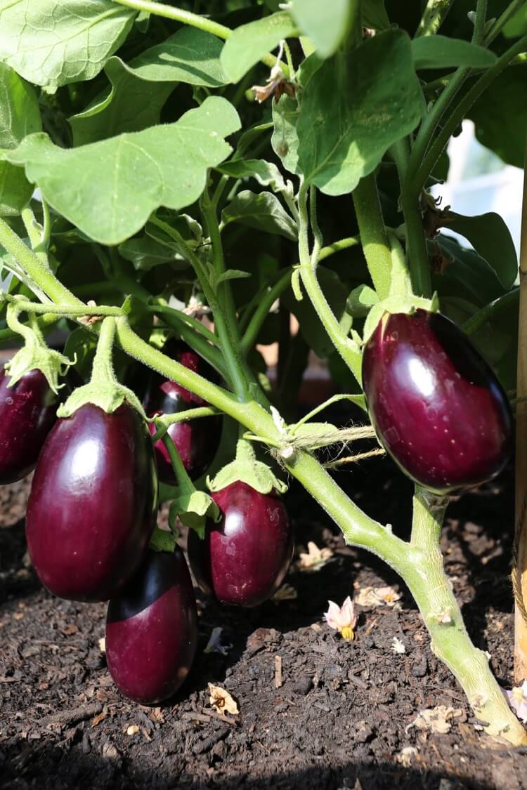 Aubergine Jackpot F1 in the greenhouse, fed with compost mulch only