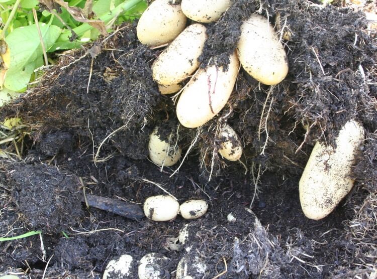 Harvest of no dig Charlotte potatoes in July 2011: the video is 2018 & they are smaller!