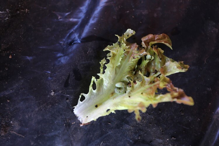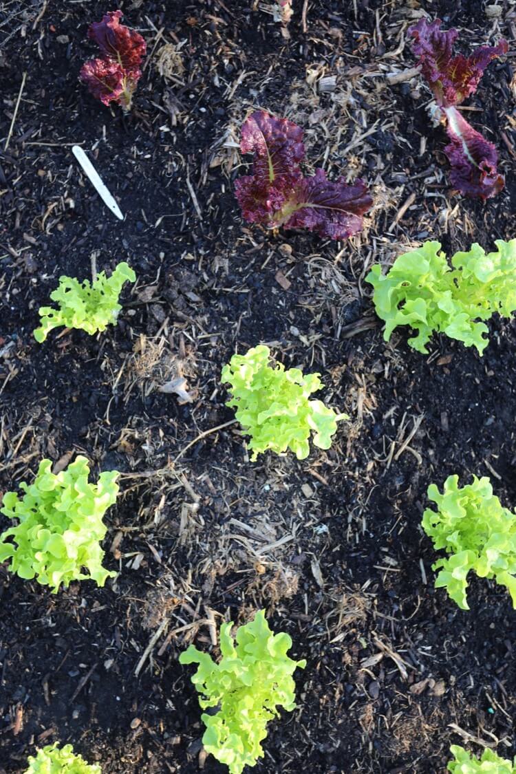 Mulch around lettuce of the previous crop, pea plants which were mowed off