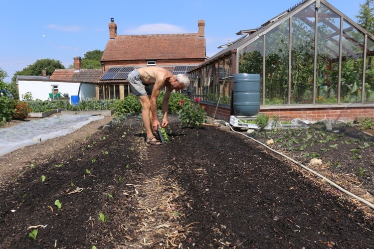 We are using a lot of water for new plantings, but I figure it’s worth paying for, compared to leaving ground bare. I hope that by September these crops can bulk up with rain! Replanting no dig beds is quick, just dib holes and pop in the modules, no other preparation or new feeds.