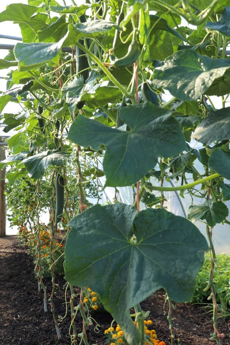 Cucumbers thank goodness are healthy in my polytunnel, Carmen F1 mostly