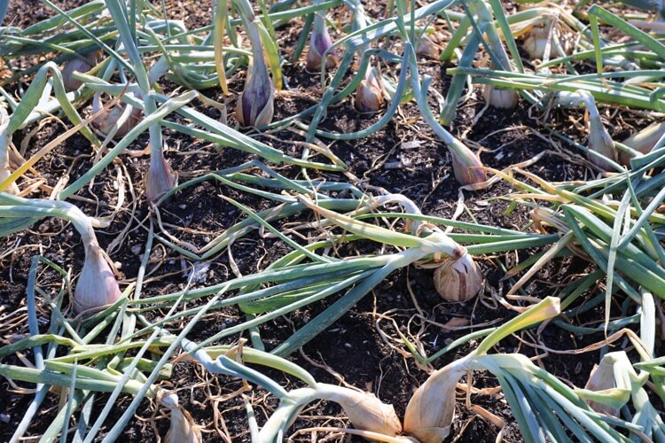 Do harvest it if you have not already. Tops are better half green at harvest. If mostly died off, the skin around each bulb’s cloves will be decayed and they look shabby.