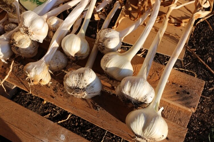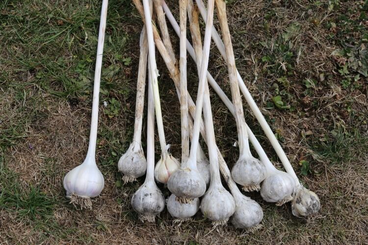 Hardneck garlic: bulb on left was pulled a week earlier than the others