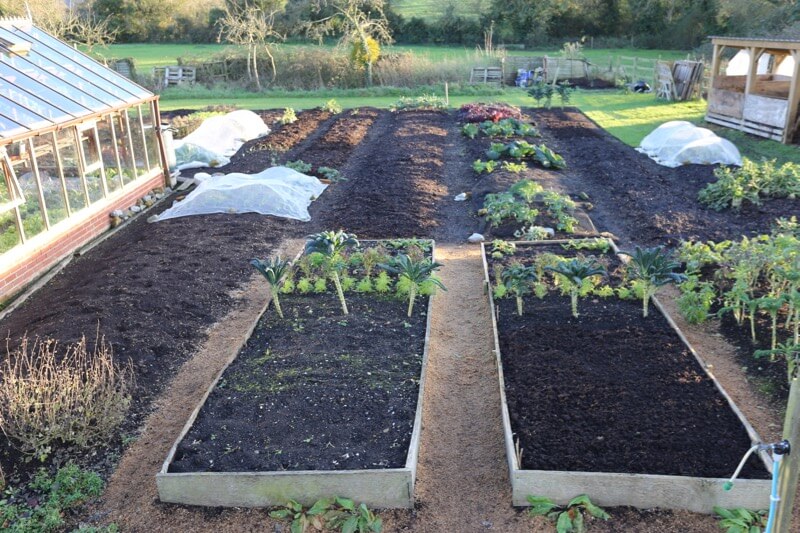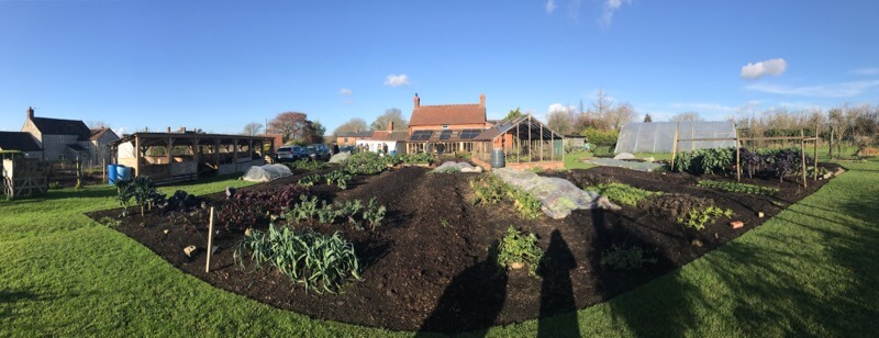 View 14th November, the dig/no dig beds in front, many veg still to harvest