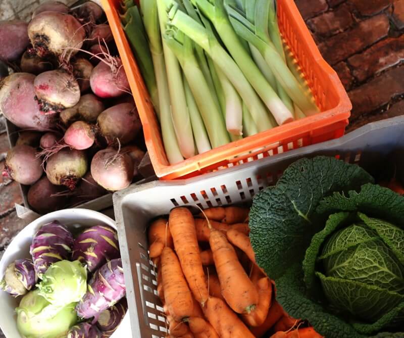 On 27th-28th November and before the current frosts (-4C/25F here + breeze, so effectively colder), we brought in lovely harvests of beetroot, carrots, celery, fennel, red cabbage, Chinese cabbage hearts, chicory, kohlrabi and celeriac. Some of these are frost hardy but there is also the question of slugs and rodents eating outdoor crops.