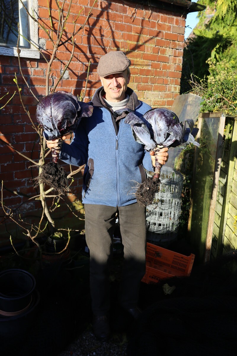 We pulled chicories and red cabbage out of the ground to leave the main rootball on, then I packed the harvests into crates lined with polythene, currently outside and in a less frosty place than mid-garden. I shall compare how the cabbage store with roots, to those in the shed without roots.