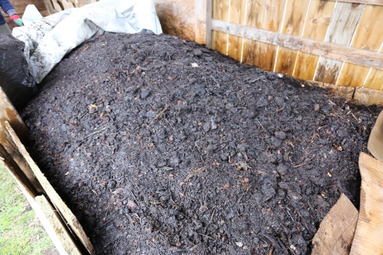 A great winter job, as long as you can find the materials. There is less green matter now so there may not be enough heat to kill weed seeds, however if you have access to fresh manure and coffee grounds, they bring heat.Every garden is different and for the quantities I make and the uses I need it for – vegetables of the highest quality – just one turn of the heap works well. This heap was only 8-14 weeks old at the time of turning, and warmed to 60C after the turn. We can use it by Christmas, or it would not hurt to be spread in spring, say in the polytunnel after clearing winter salads in May.This heap maintained a steady 60-70C during its build and since then has been 60 then 50C.
