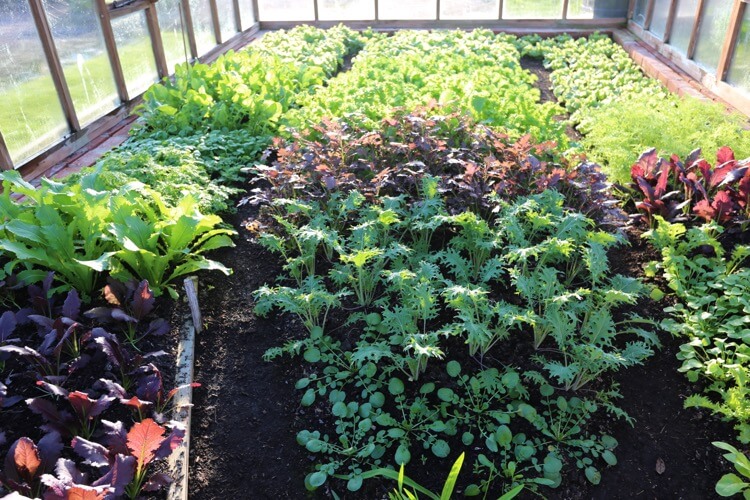 Homeacres leaves are now half from outside, half from new plantings undercover. Growth in November of the new polytunnel and greenhouse plantings has been exuberant, but on today’s pick we noticed the first infestation of mildew on older leaves, since the weather turned dull and damper.