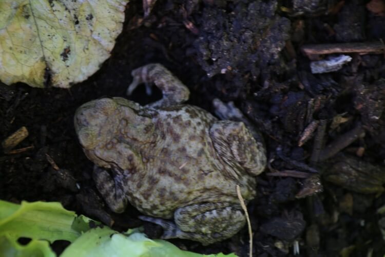 Steph found this toad while picking lettuce: after taking the photo, it disappeared!