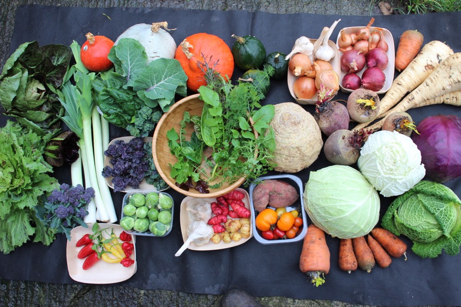 Homeacres vegetables on December 19th, some fresh picked and some stored