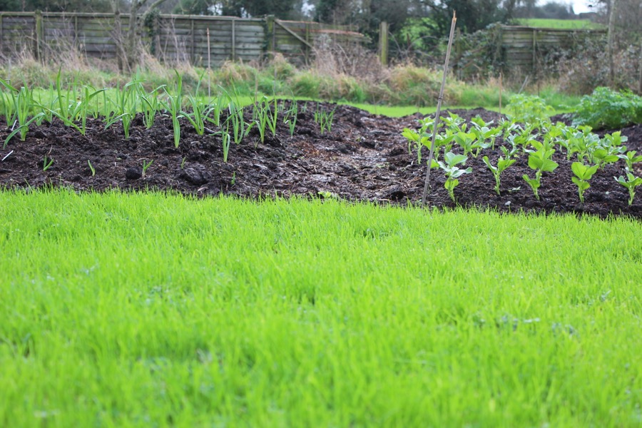 Direct sown (Nov 16th) garlic and broad beans are now much taller than usual