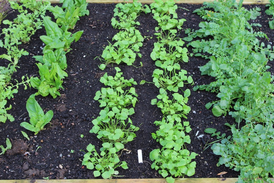 - Next job is probably weeding after 2-3 weeks, harvests soon after that e.g. salad leaves, radish