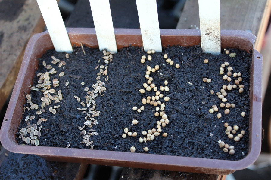 Seeds in a tray for pricking out, dill and coriander, want a little compost on top