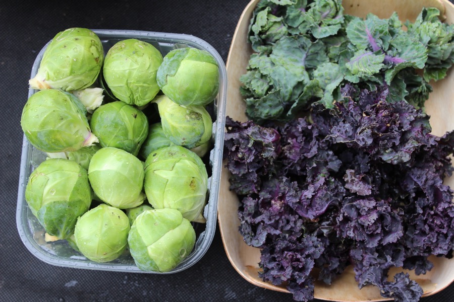 Brussels on left and flower sprouts on right were sown in a seed tray last May, pricked to a module, planted June