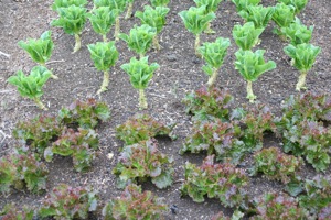 Then in two weeks time, at month’s end, it is the best time for sowing oriental leaves and rocket, which are by that time less prone to attack by flea beetle, and less likely to flower. To illustrate this, some komatsuna that I sowed in early July, out of interest more than expectation, is more than 50% damaged by flea beetle holes and has barely grown, while lettuce has been growing beautifully.