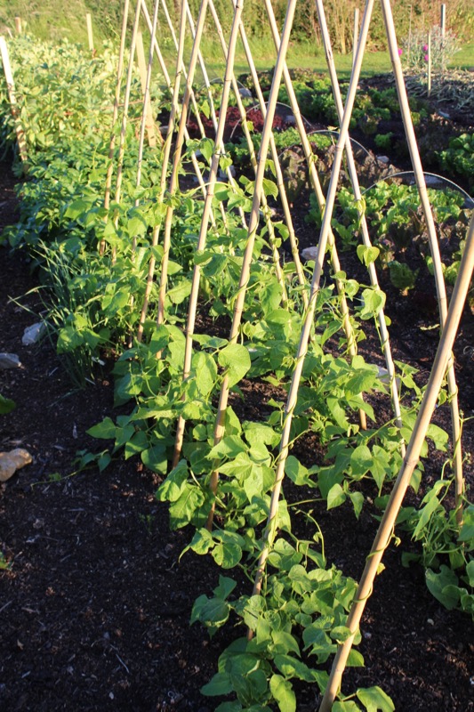 Climbing beans looked pale and unhappy until ten days ago, when the wind eased and temperatures rose: they need warmth, its as simple as that.