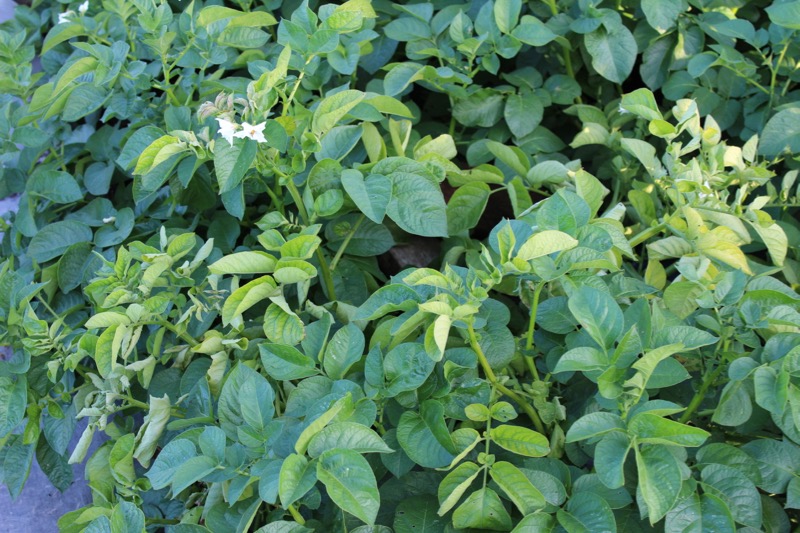 Yellow leaves of a virus-affected potato, growth was healthy until a week ago