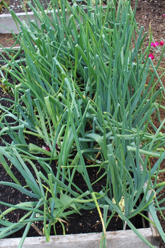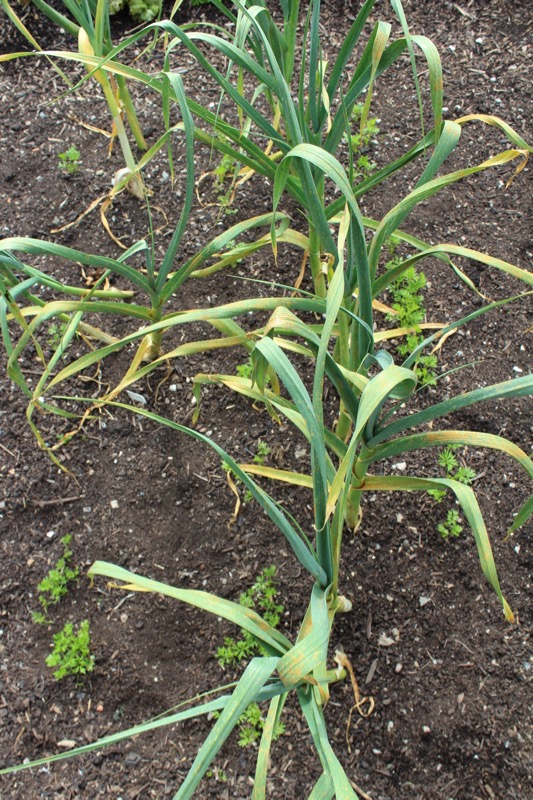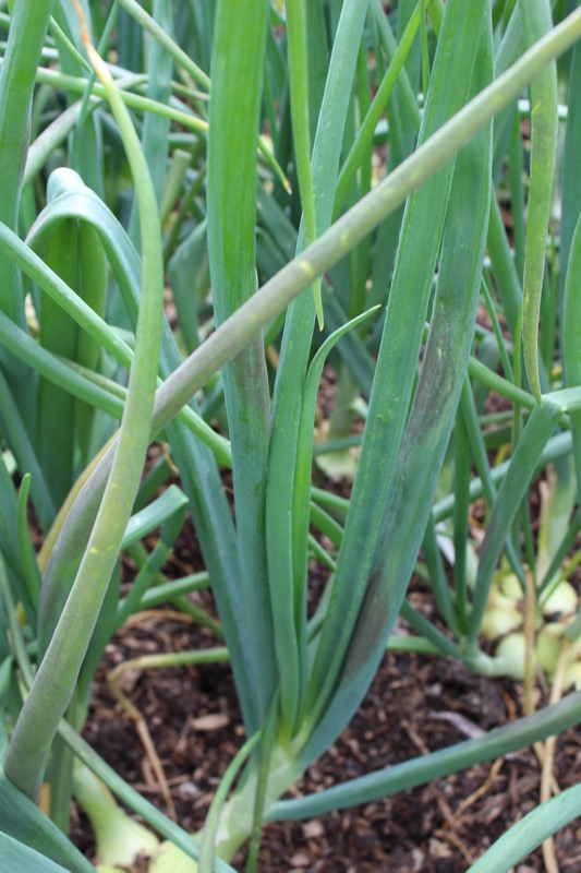 And onion mildew, oh dear! This horrible disease has arrived on my onion leaves after a damp weekend. It had appeared first, three weeks ago, on shallots grown from my own seed, and I do not know a remedy.
