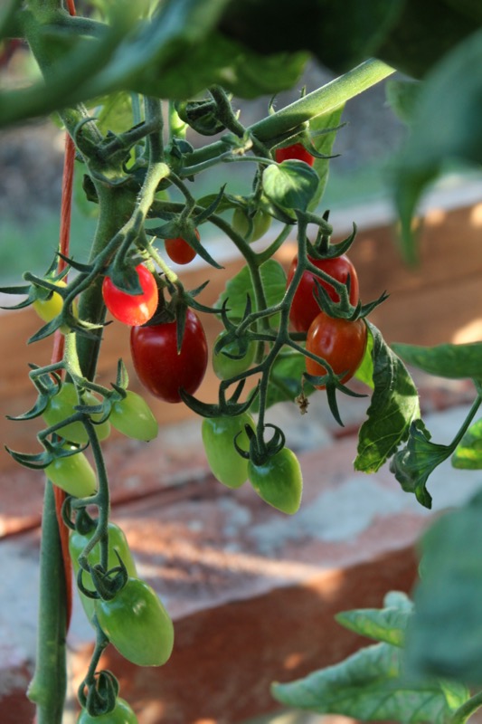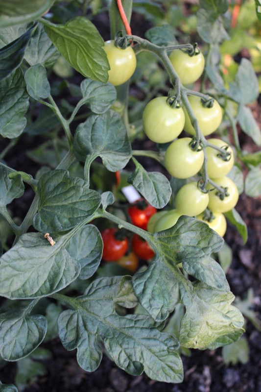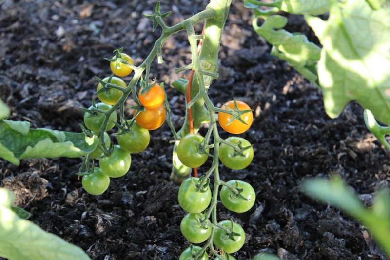 Cherry tomatoes are ripening and I am not feeding them, I rely on the compost which is two year old cow manure. The earliest tomatoes to ripen were on plants raised from sideshoots last October, but that takes a lot of time and care, for about a fortnight’s difference. Currently I water every two days because the air is so dry and the sun so bright.