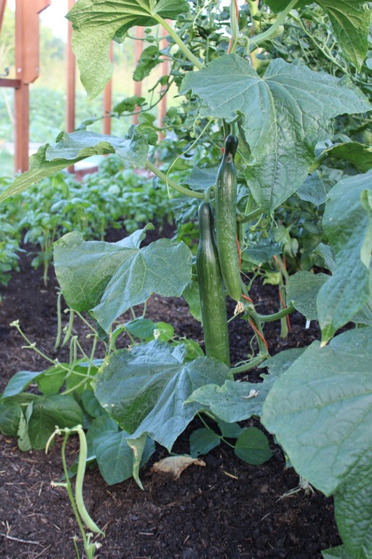 Under the cucumbers I have a nice catch crop of dwarf French beans.
