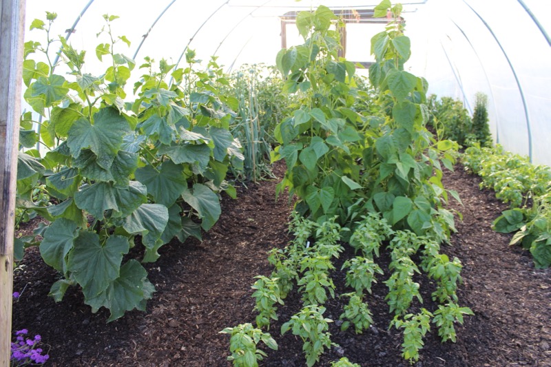 Cobra climbing beans gave their first pick on June 24th and look strong, just eight plants. Basil is for my salad bags, and I plan to store many tomatoes in autumn, using the dehydrator.