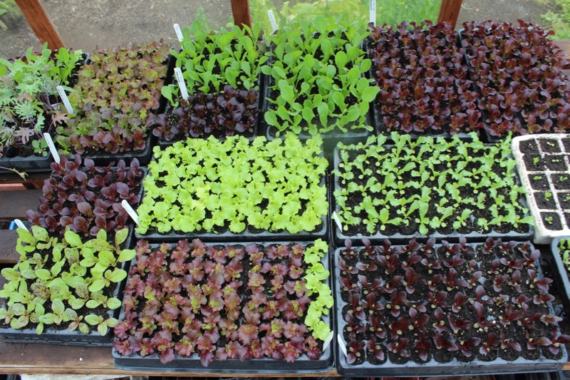 Lettuces pricked as seedlings into module trays, here they are 20 days after sowing, ready to go out