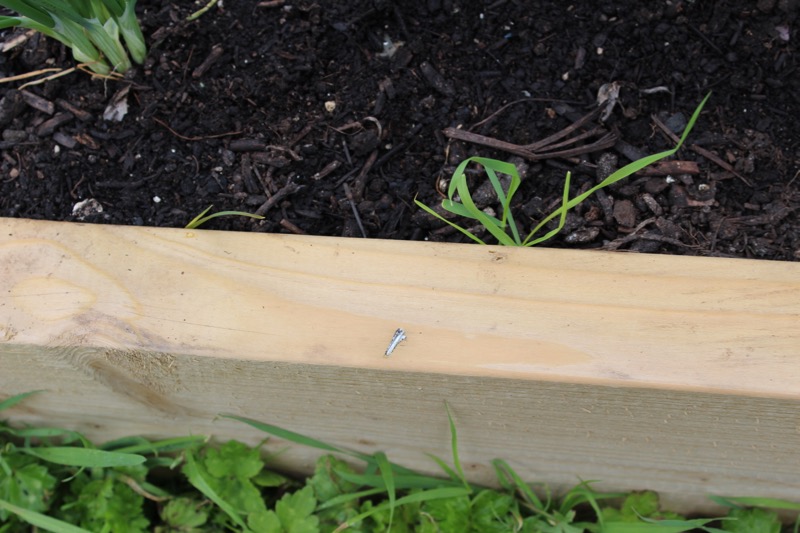 Carrots sown between garlic have suffered from sparrows taking dust baths!